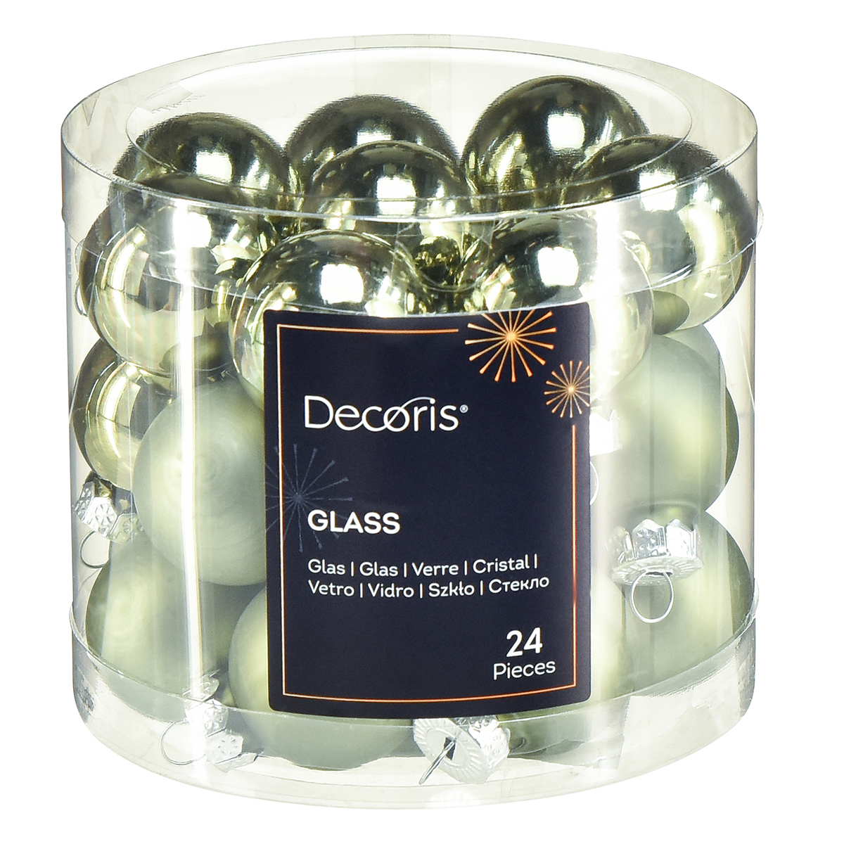 Mini karácsonyfa golyó üveg zöld keverék Ø2,5cm 22 db