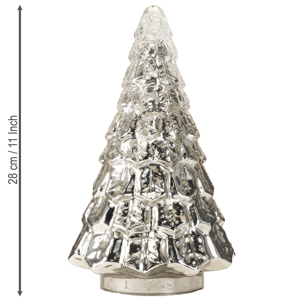 Egyedi és hangulatos karácsonyi dekorációt keresel? Ez az ezüst mini karácsonyfa LED-világítással tökéletes választás, ha eleganciával és ünnepi hangulattal szeretnéd feldíszíteni otthonodat vagy irodádat. Körülbelül 28 cm magas, szemet gyönyörködtető látvány, amely ötvözi a nosztalgikus és a modern elemeket – ideális a nappaliba, a bejárathoz vagy akár az íróasztalodra is. A finom, csillogó arany pöttyök átragyognak a vintage stílusú, kopott ezüst festéken, így a fa a LED-világításnak köszönhetően meleg, lágy fényt áraszt. A teteje átlátszó, ami tovább fokozza a kis fenyőfa ragyogását.