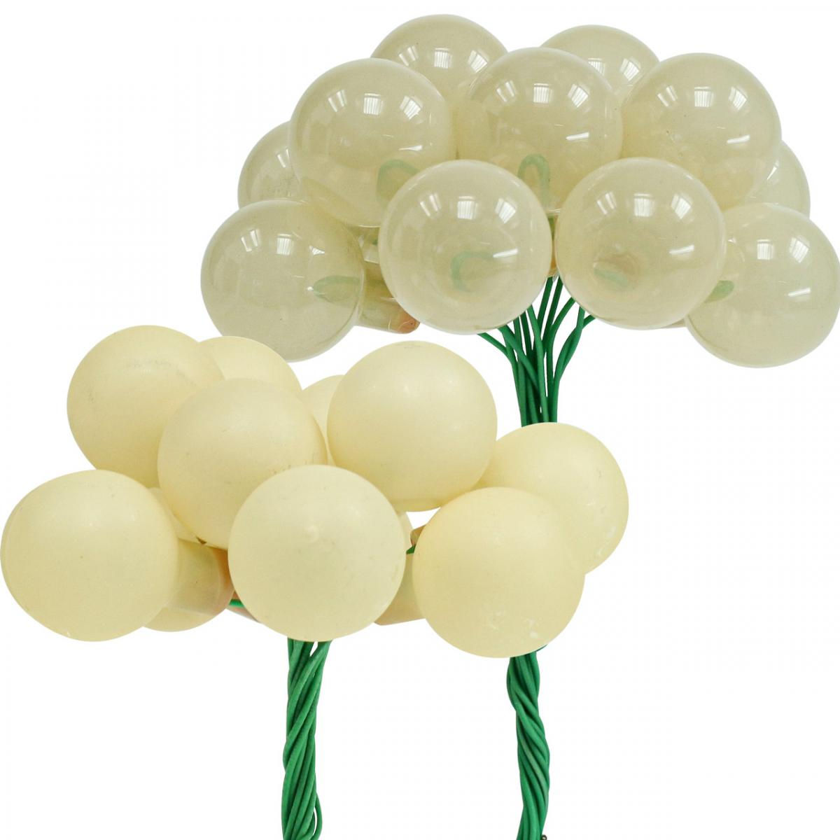 A dróton krémszínű üveggolyók nemcsak a karácsonyi szezonban, hanem azon túl is ideálisak dekorációnak.