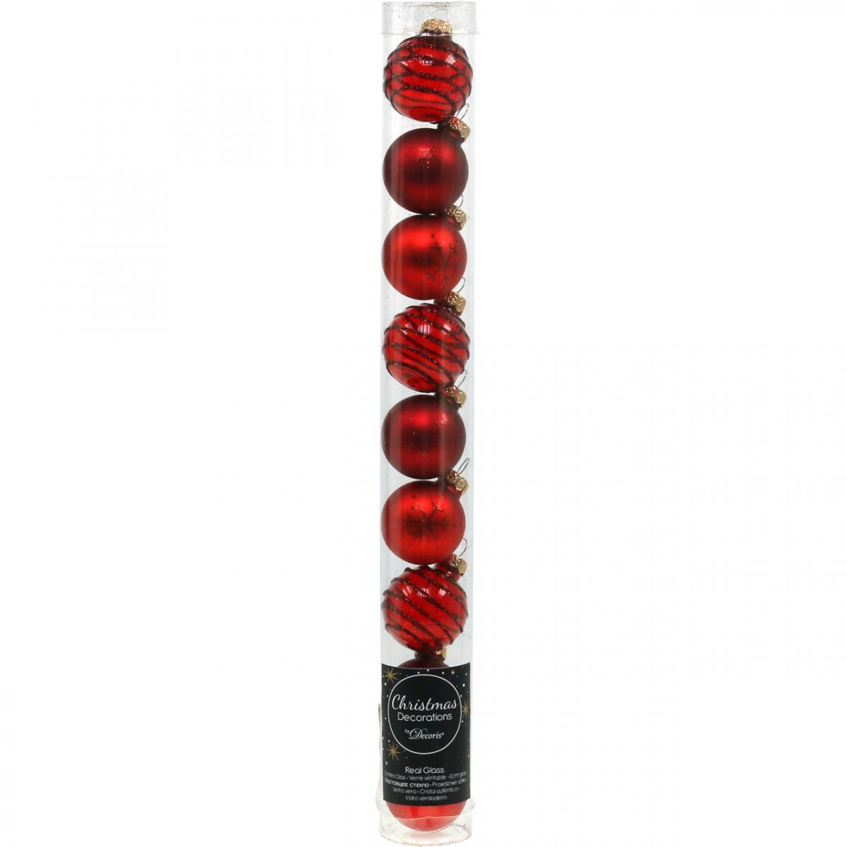 Mini karácsonyi golyók piros mix valódi üveg Ø3cm 9 db