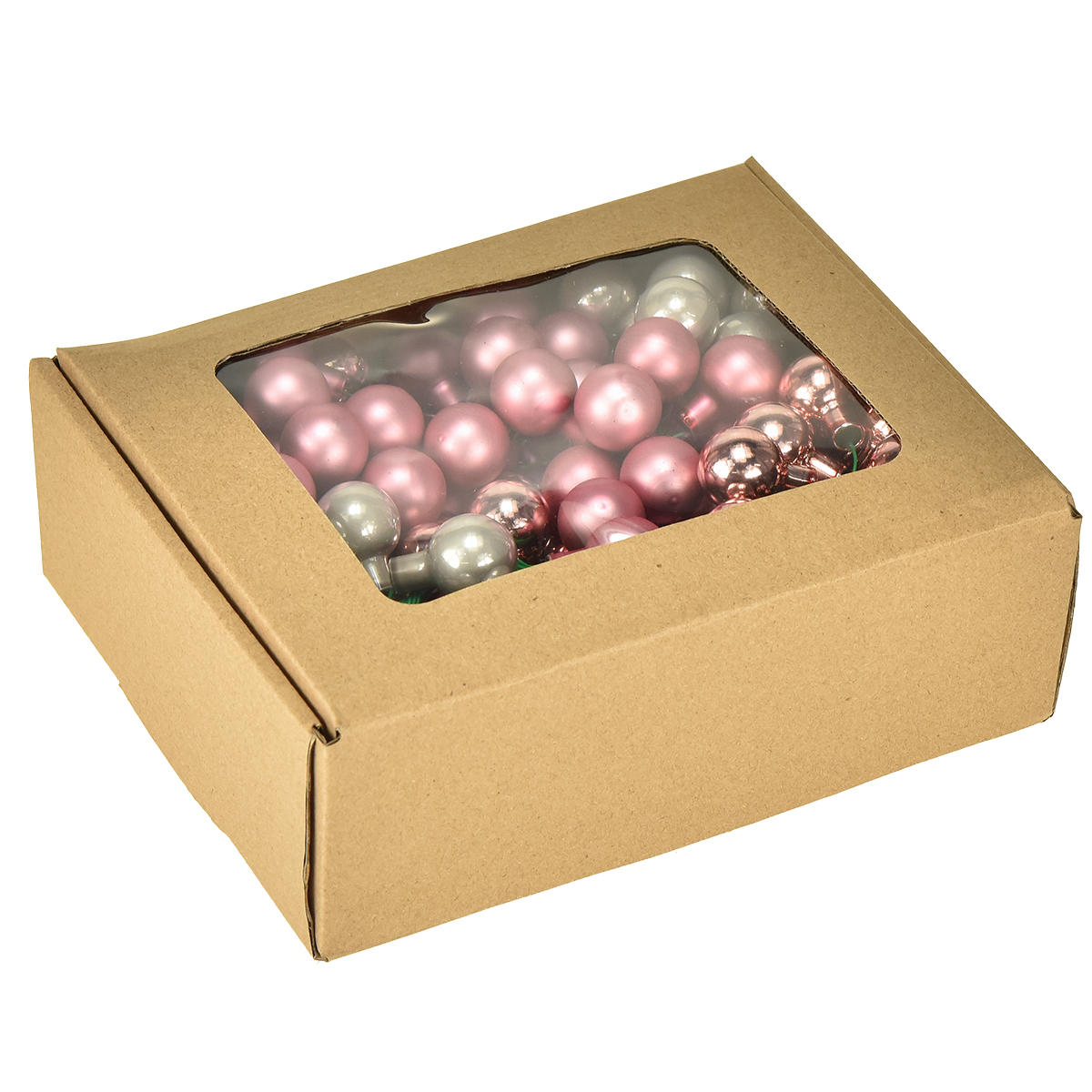 Termék neve: Mini karácsonyi gömbök üveg tükör bogyók rózsaszín krém Ø20mm 140 db