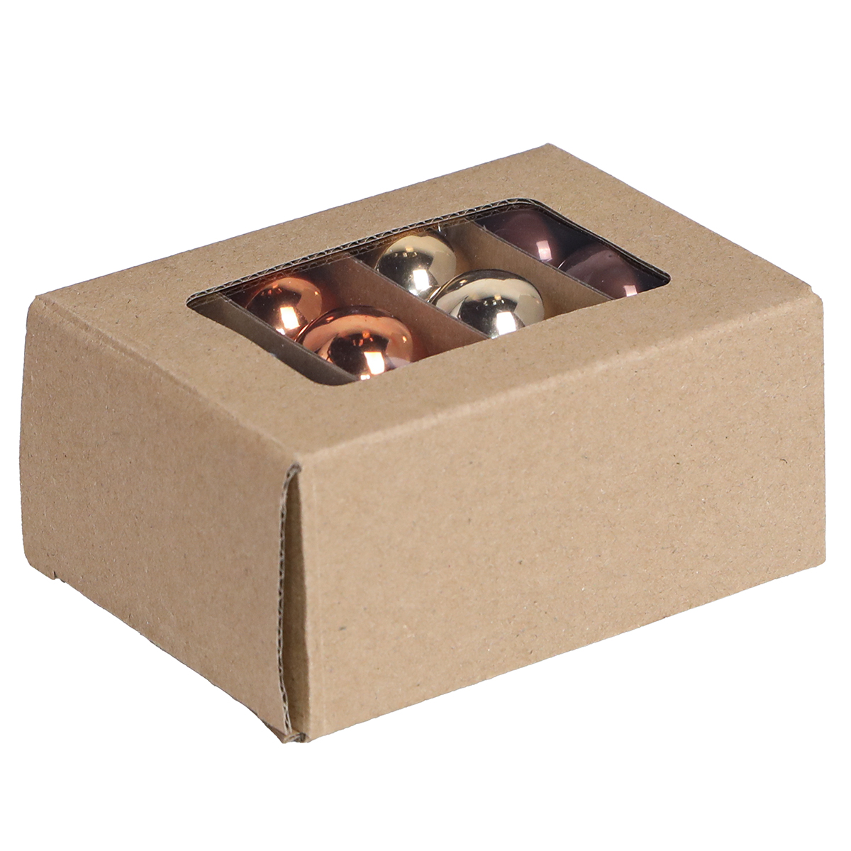 A mini üveggolyók sokoldalúak, és bárhol ünnepi hangulatot teremtenek. Engedje szabadjára kreativitását, és használja a labdákat a karácsonyi asztal dekorációjához vagy kreatív kézműves projektekhez. Vigyen egy darab csillogást otthonába az arany, barna és meleg sárgabarack színű mini karácsonyi díszekkel.
