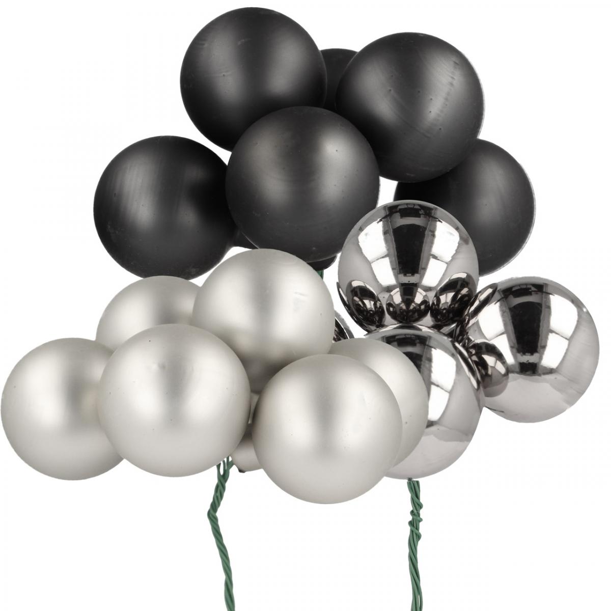 Mini karácsonyi labdák ezüst, antracit üveg Ø40mm mix 32 db