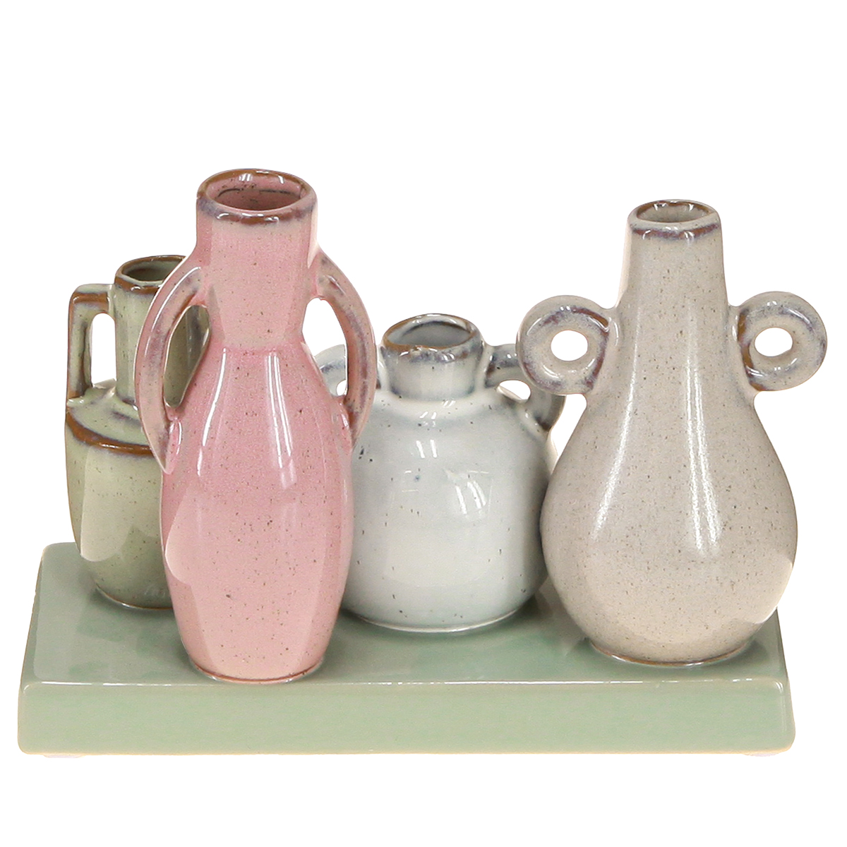Mini kerámia váza szett lakberendezéshez, 14 cm