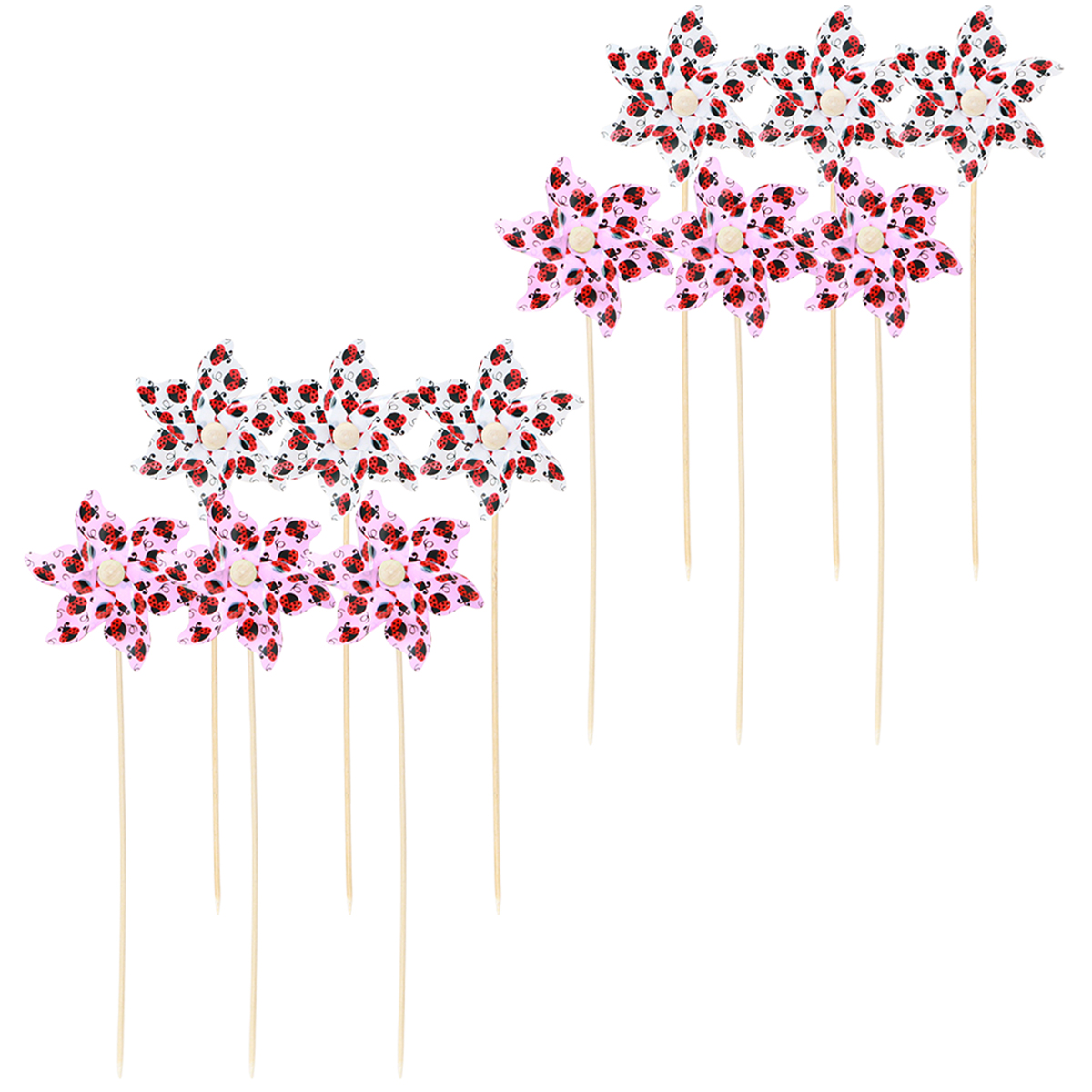 Mini Szélmalom Katicabogár Dekoráció Fehér Lila Ø8cm 12 Db
