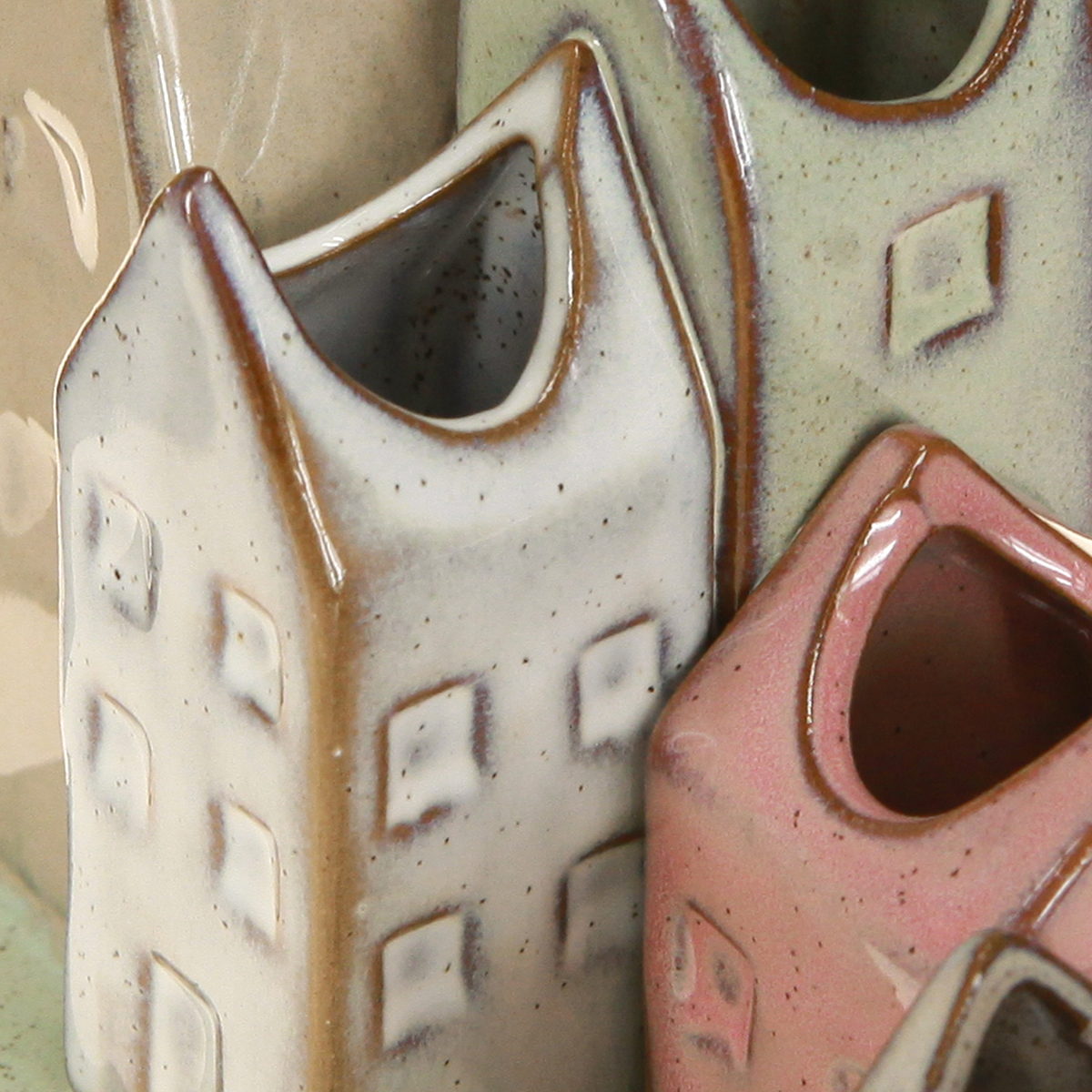 Mini váza szett, színes házikók asztaldísznek, 14cm