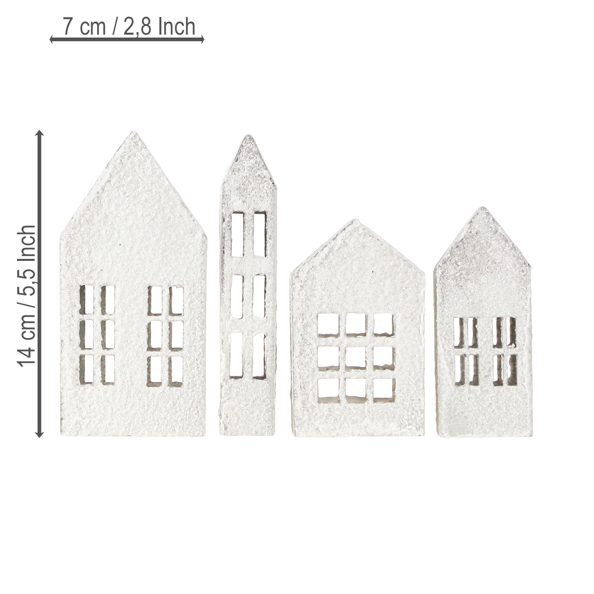 Termék neve: Miniatűr házak belsőépítészethez és hangulathoz, nagyon dekoratív, időtlen dizájn otthonra, 14 cm, 4 darab