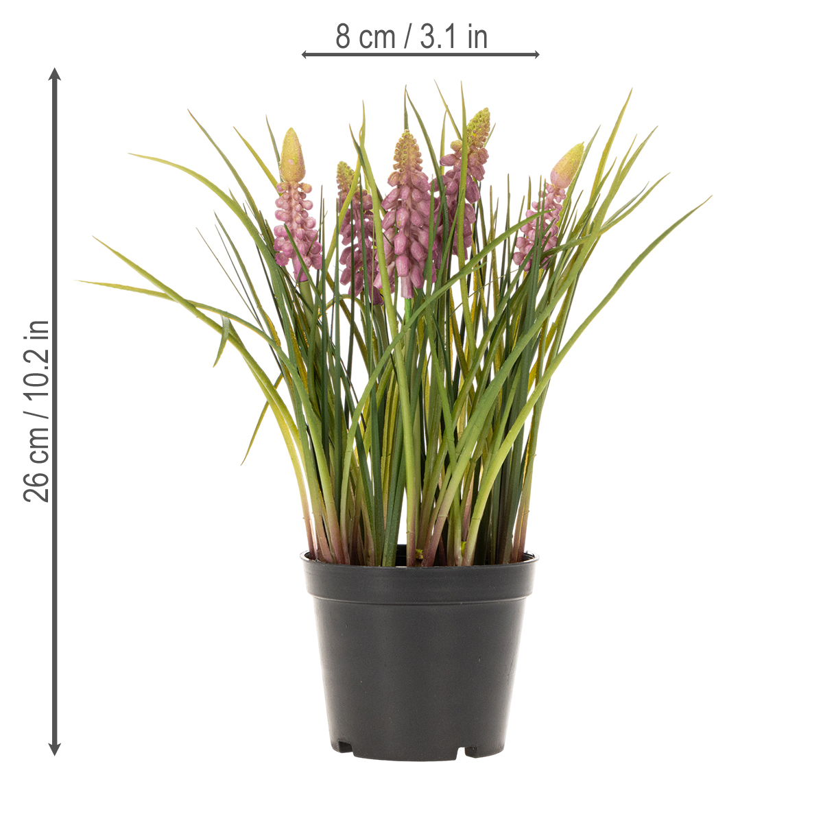 Műjácint növényünk nemcsak realisztikus megjelenésével, hanem sokoldalúságával is lenyűgöző. 8 cm átmérőjével és 26 cm magasságával ideális kisebb kompozíciókhoz, például íróasztalra vagy fürdőszobai tükörpolcra. A rózsaszín virágok könnyedséget árasztanak, és finom, nőies hatást keltenek – tökéletes azok számára, akik értékelik a harmonikus belsőépítészetet.