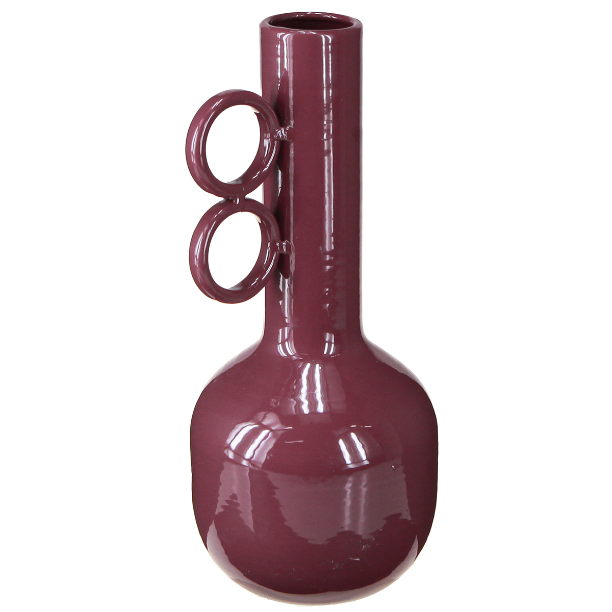 Modern dizájnú váza hosszú nyakkal és kerek fogantyúkkal