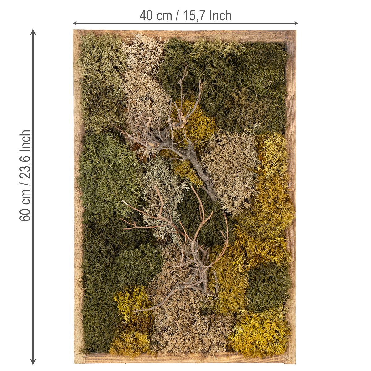 Mohakép, valódi tartósított moha és gallyak, natúr, 60×40cm