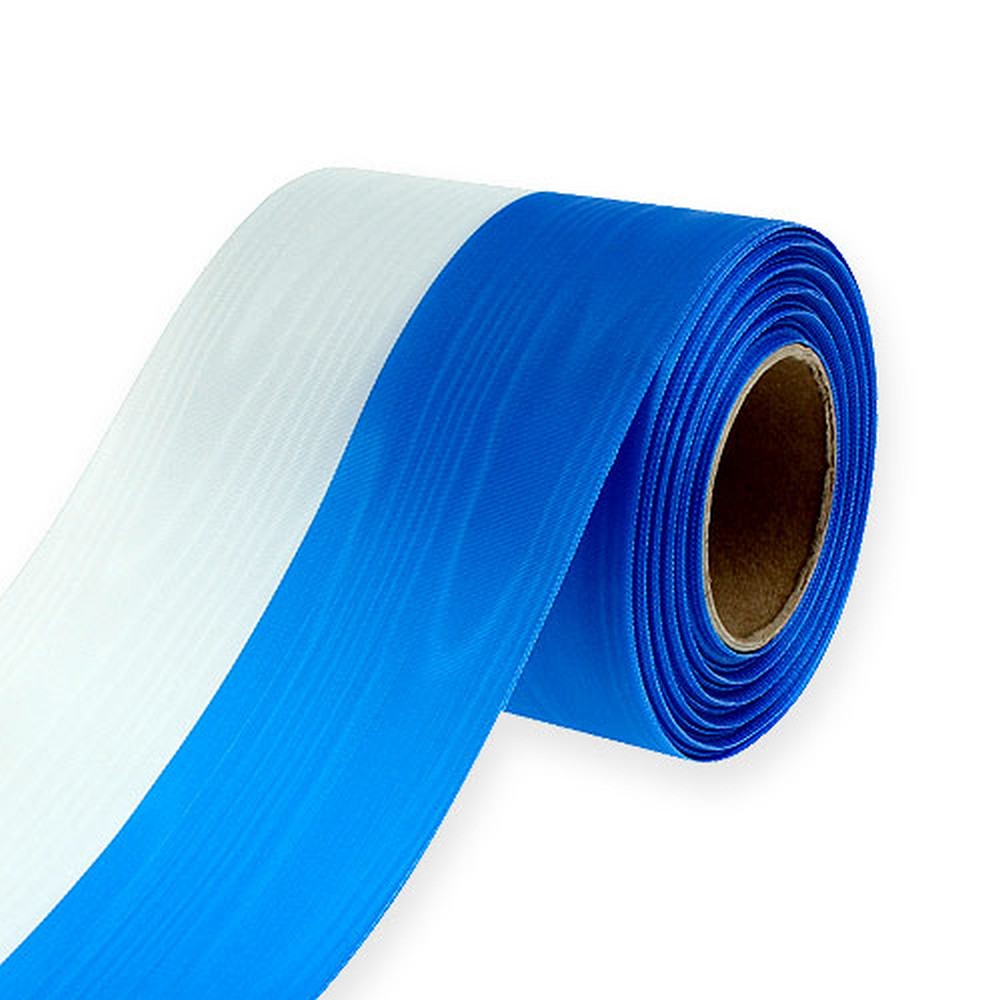 Termék neve: Moiré kék-fehér koszorúszalag, 100 mm-es díszes taftszalag