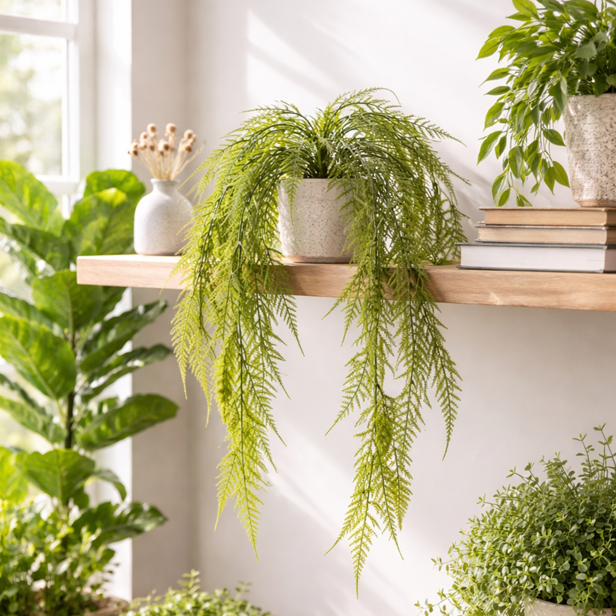 A gazdag zöld szín és az aprólékosan kidolgozott levelek azonnal megragadják a tekintetet, és üdítően élethűnek tűnnek. Legyen szó modern, skandináv vagy bohém stílusú – a műspárga szinte bármilyen belsőépítészeti stílust kiegészít, és harmonikusan illeszkedik a különféle helyiségekbe. Akkor minek bajlódni az igazi növények fáradságos gondozásával, ha olyan egyszerű?