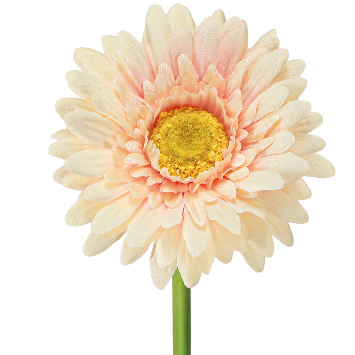 A mesterséges gerberának hosszú szára van, amely a sárgabarackban egy nagy napszerű virágban végződik. A zöld virágszár belsejében rugalmas fémhuzal található. Ez azt jelenti, hogy a gerbera művirágokat az elképzelései szerint formálhatja dekorációs elrendezéseihez.