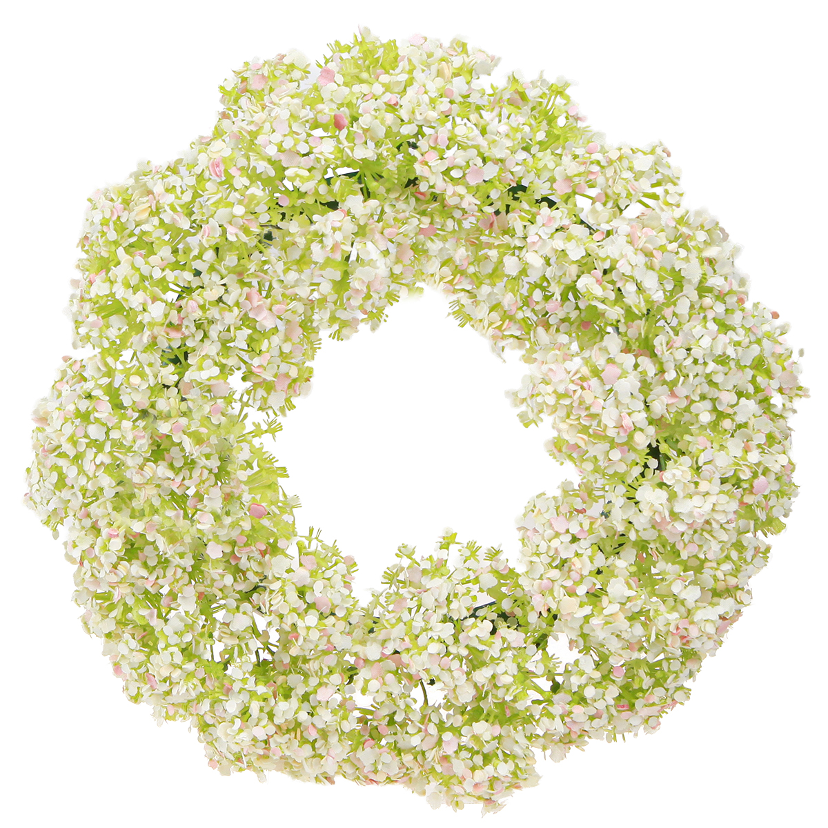 Művirág koszorú kis fehér rózsaszín zöld koszorú Ø25cm
