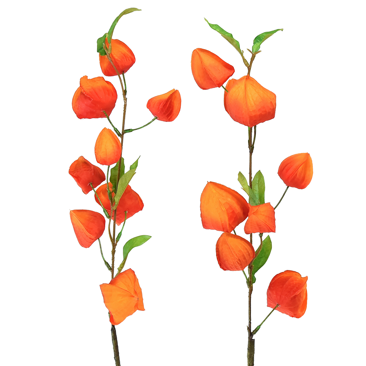 A narancssárga lámpás virágnak ez az ága művirágként hangulatos színt visz őszi dekorációjába!A Physalis dekorációban összesen nyolc különböző méretű, erős narancssárga tónusú selyemvirág található egy hosszú, keskeny díszágon. A művirágok úgy néznek ki, mint az igaziak, és alig lehet megkülönböztetni természetes társaitól.