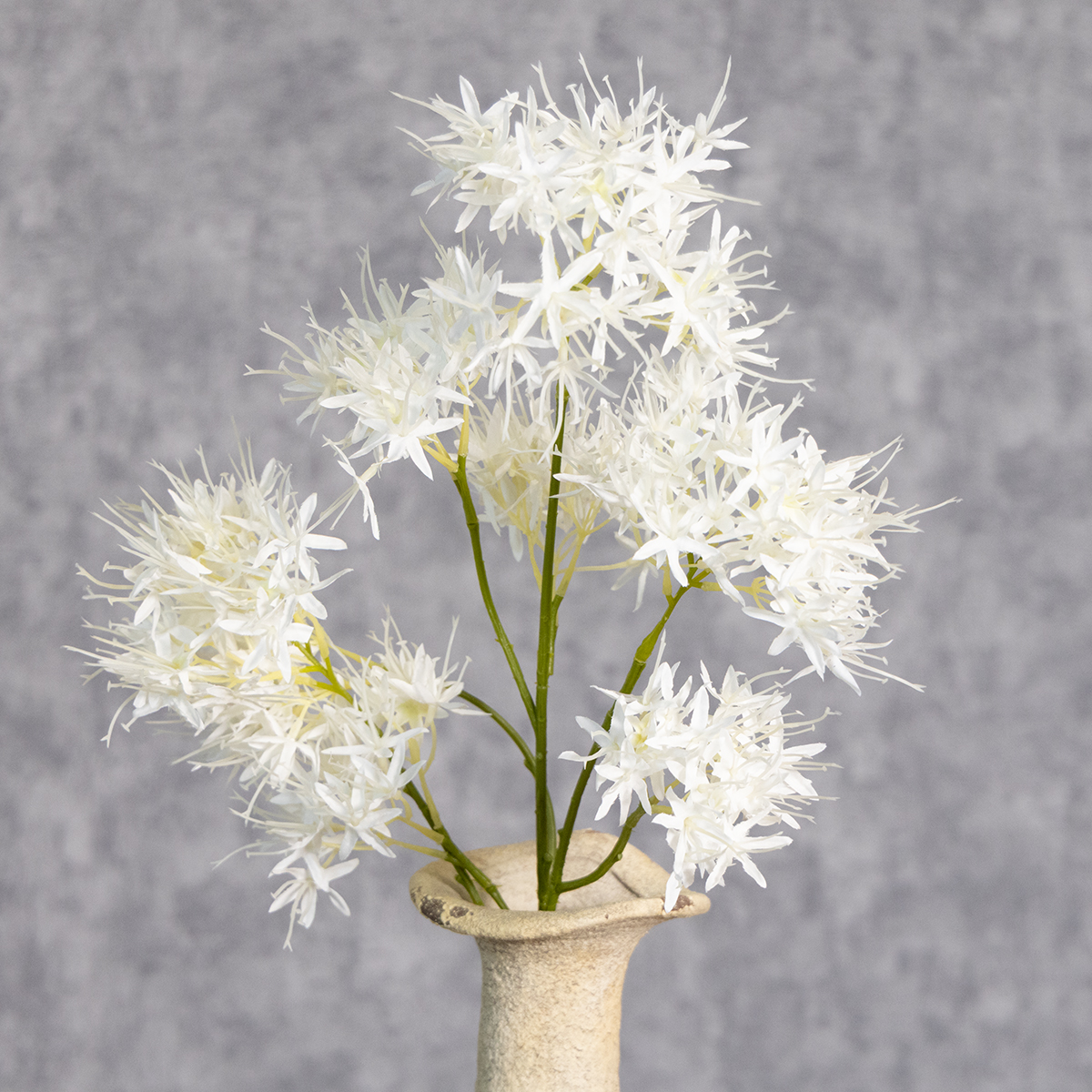A fehér virágok mindig is a tisztaságot, az eleganciát és az új kezdeteket szimbolizálták. Ez a szimbolika különösen népszerűvé teszi őket az esküvői és ünnepi dekorációkban. Nyugalmat és tisztaságot sugároznak, feldobva bármilyen környezetet. Ennek a művirágágnak a stílusos egyszerűsége kiemeli ezeket a tulajdonságokat, és tökéletesen bemutatja azokat. Akár különleges alkalmakra, akár állandó dekorációként használja, ez a kiegészítő az időtlen stílust és a klasszikus szépséget testesíti meg.