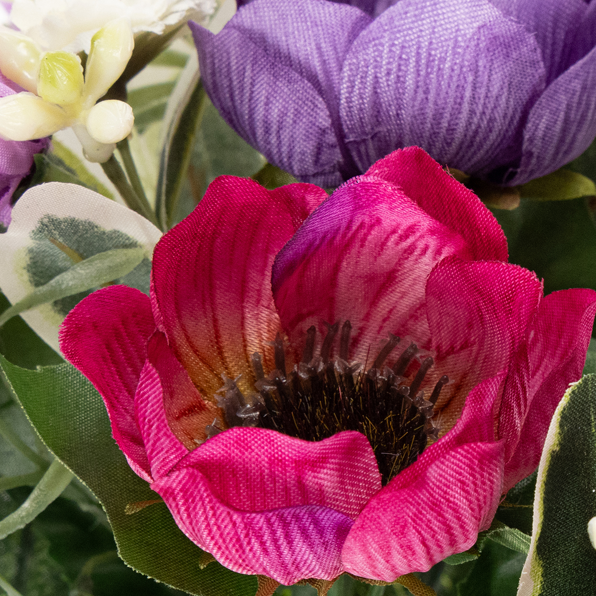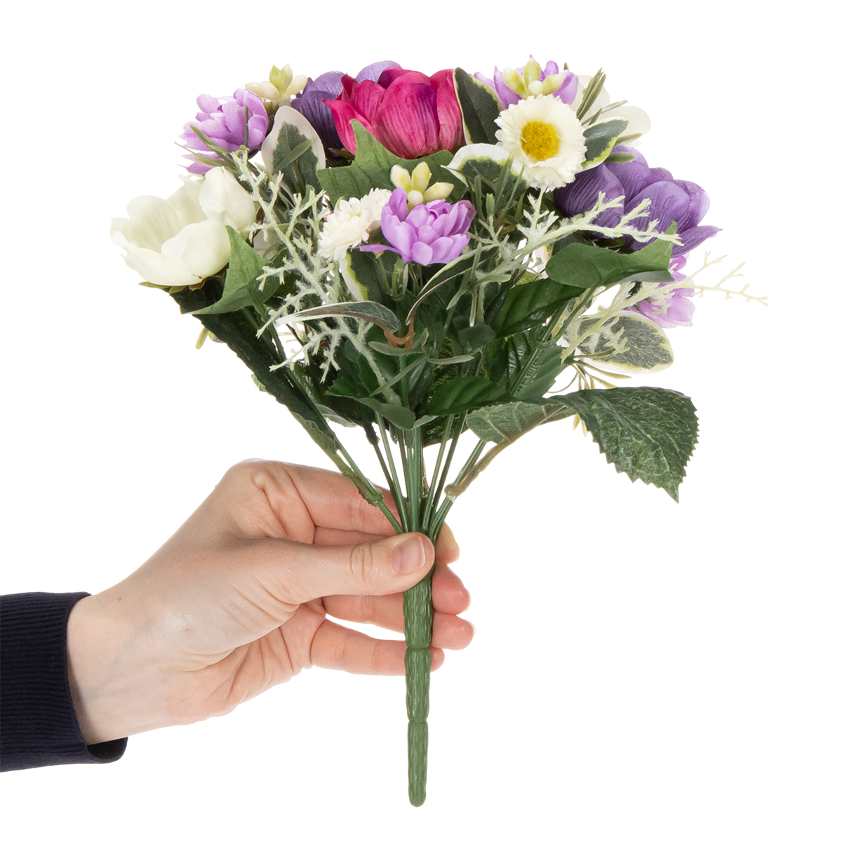 Itt a tavasz! Varázsolj otthonodból a jólét oázisát, és lehelj új életet dekorációdba – teljesen karbantartásmentesen. A műrózsa csokorral ez egyszerű. Ez a hihetetlenül valósághű szellőrózsákból, százszorszépekből és lila díszítésekből álló színes kompozíció egy csipetnyi természetet visz a lakásba. Az élénk színek és a finom virágminta kombinációja tökéletesen kiegészíti a modern belső stílusokat, és stílusos kiegészítője lehet a komódoknak, asztaloknak vagy előszobáknak. Akár elegáns nappali asztaldíszként, akár vidám üdvözlőkártyaként használod az irodai asztalodon, ez a kompakt csokor (20 cm széles, 26 cm magas) garantáltan feldobja a napodat. Jól hangzik? Akkor olvass tovább, hogy többet megtudj erről a sokoldalú kiegészítőről!