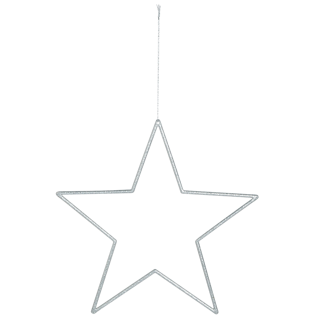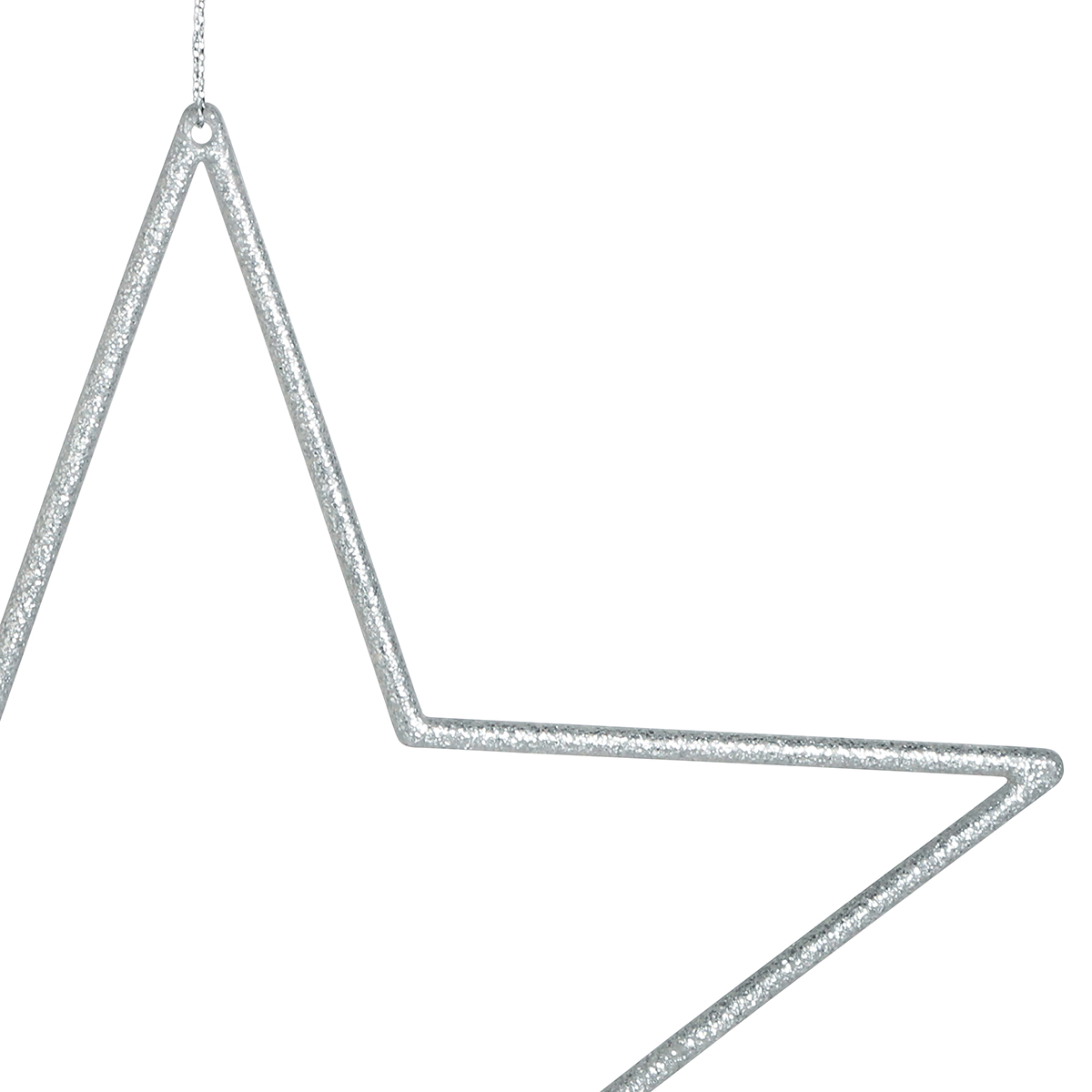 Nagy ezüst csillámos díszcsillagok, 24 cm, akasztásra - 6 darabos készlet