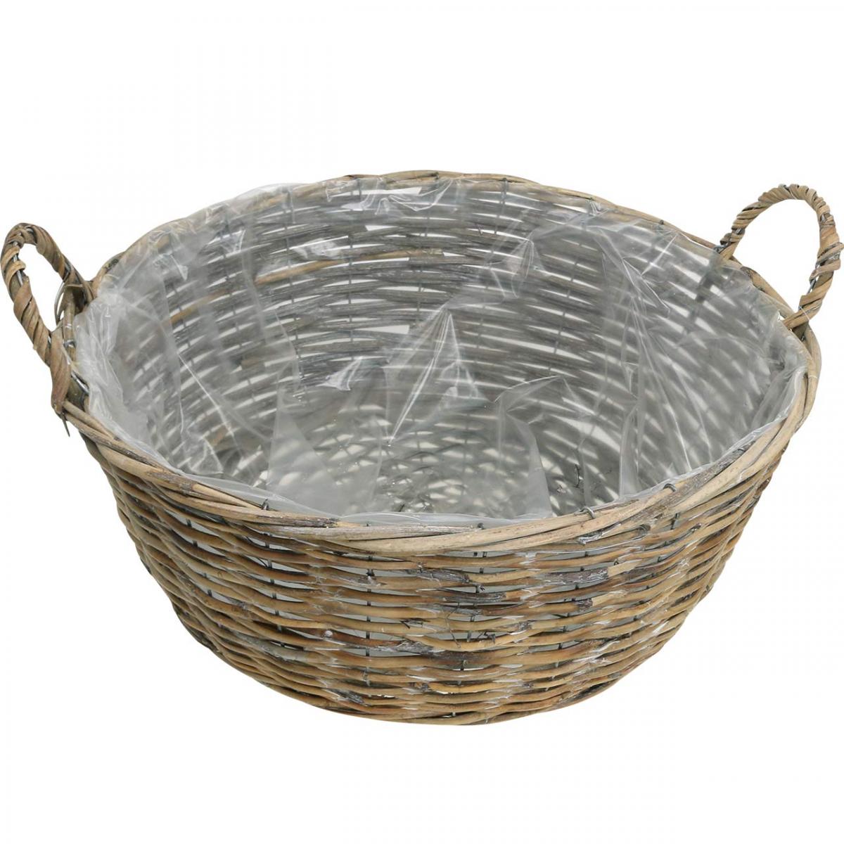 Nagy fonott kosár fogantyúkkal, natúr fehér, XL méretű virágtartó vidéki stílusban, dekoratív kosár növényeknek és tárolásra, Ø51cm