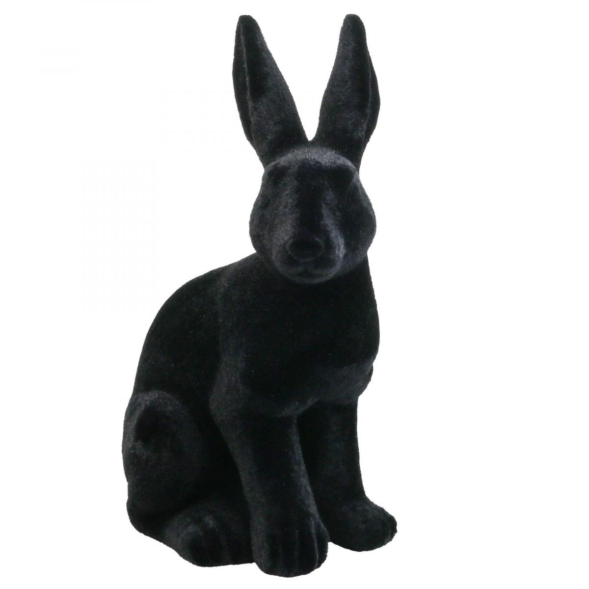 Nagy húsvéti nyuszi dekoráció, fekete bolyhos kerámia 42,5 cm