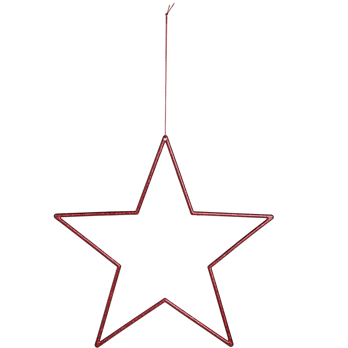 Termék neve: Nagy piros karácsonyfadísz csillagok csillámporral, akasztható, 24 cm, 6 db-os készlet