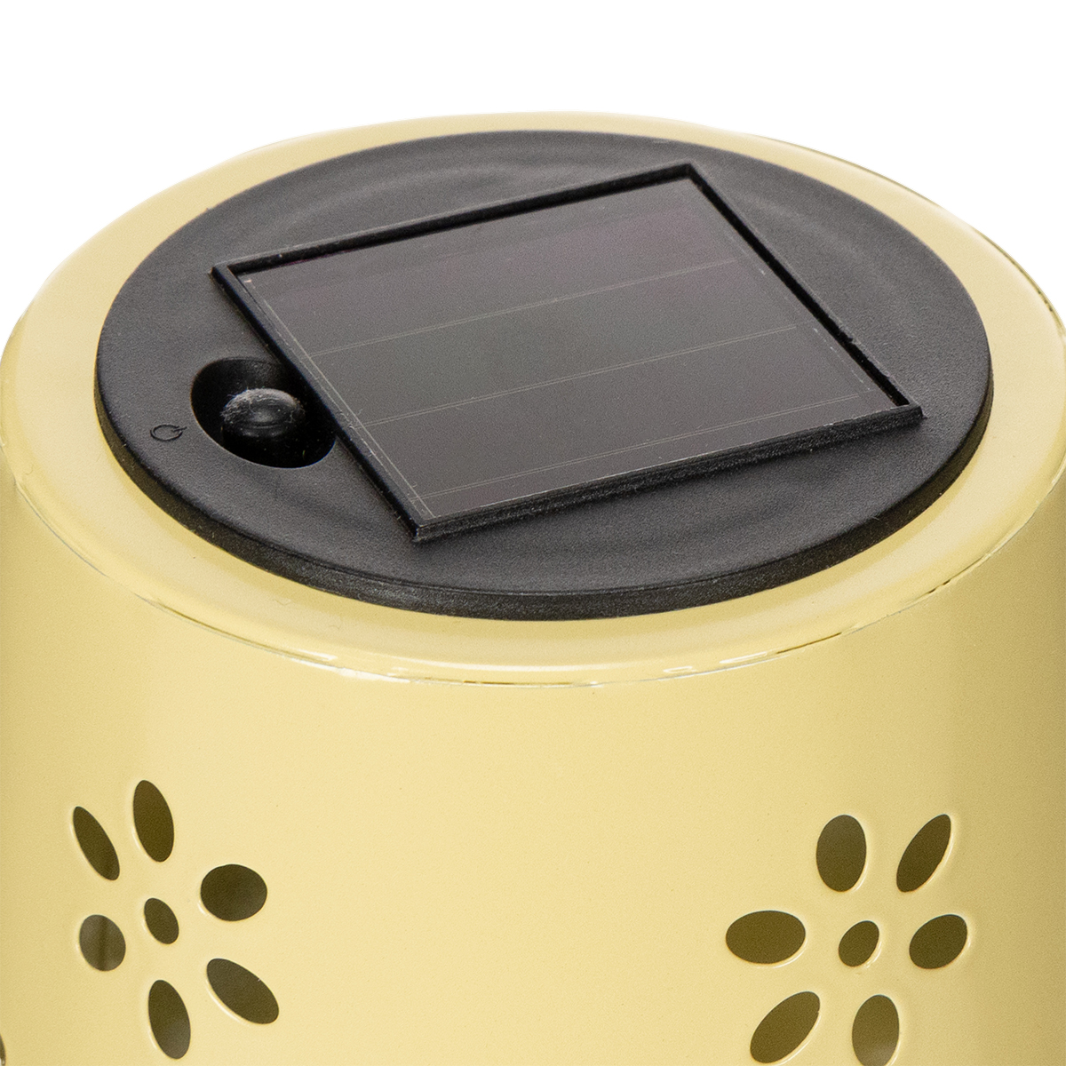 Ez a lámpa nemcsak vizuálisan lenyűgöző, de praktikus is. A sárga fém burkolat időjárásálló, így ideális kültéri használatra. Tökéletes romantikus hangulat megteremtéséhez a kertben, hangulatos világításként az erkélyen, vagy a következő kerti parti fénypontjaként. Egyetlen újratölthető AAA elemmel működő, napelemes asztali lámpa akár 6 órán át energiatakarékos és stílusos megvilágítást biztosít éjszakáról éjszakára. Próbáld ki – meg fogsz lepődni!
