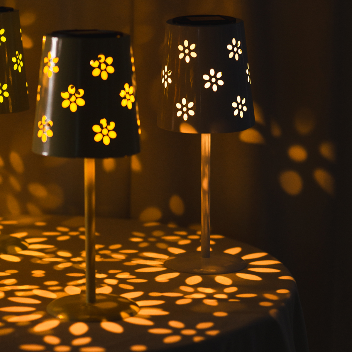 Napelemes asztali lámpa LED-del – Hangulatos világítás virágmintával