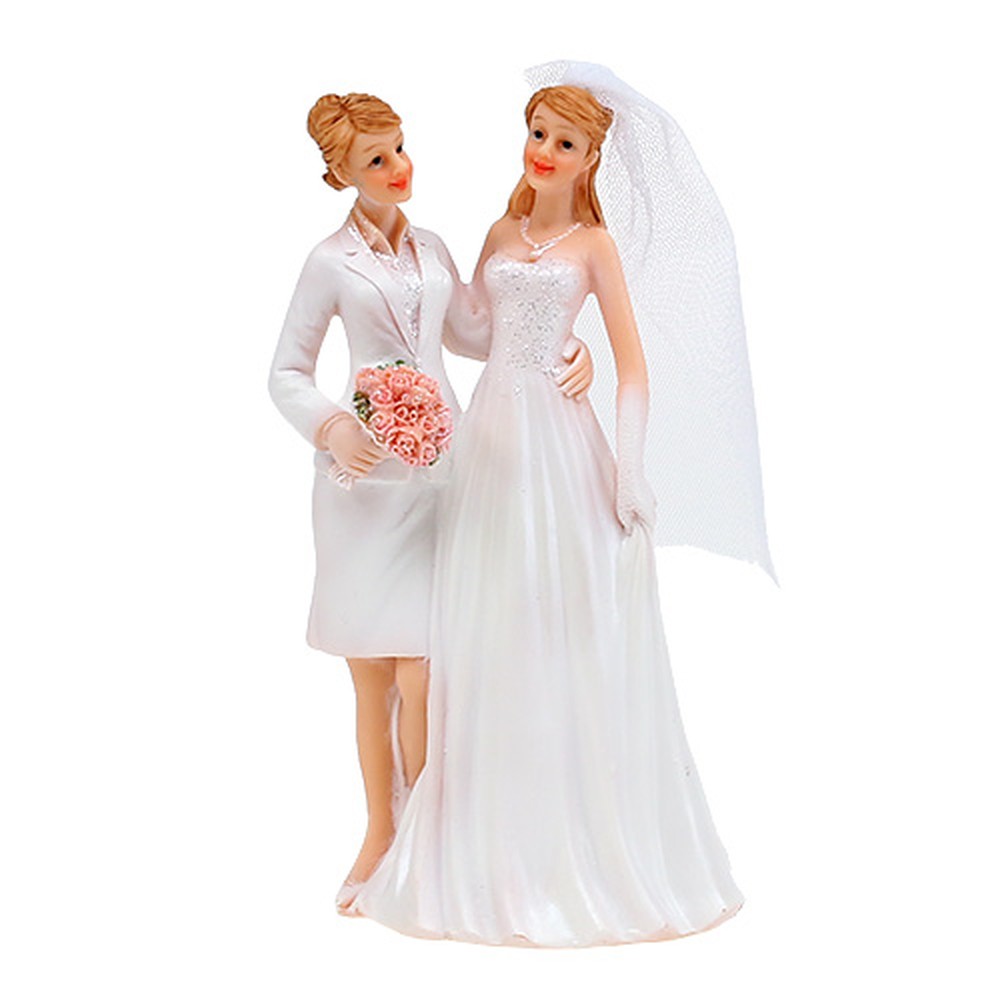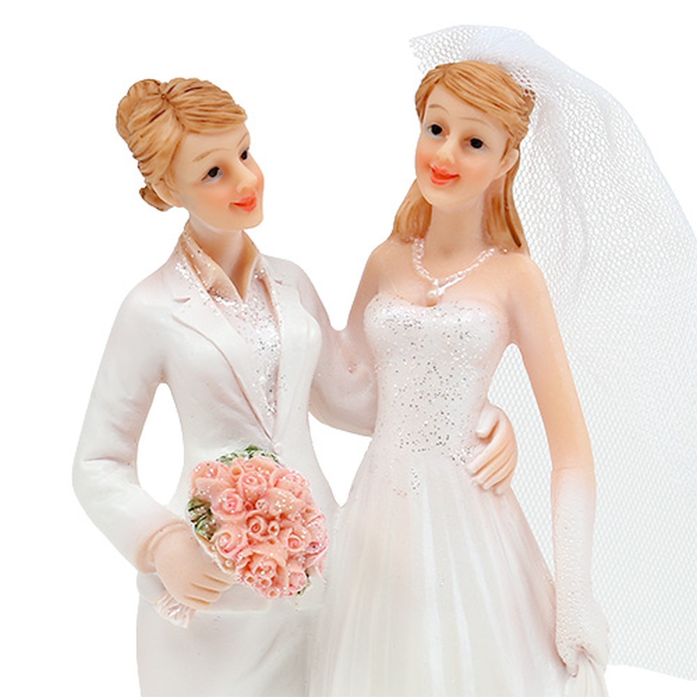A női pár, mint esküvői figura körülbelül 17 centiméteres, szélessége pedig körülbelül 10 centiméter. A lábnyom körülbelül 8,5 x 7,5 centiméter, ezért könnyen beilleszthető bármilyen asztaldíszbe. És ha alaposan megnézi a dekoratív figurát, észreveszi azt a sok részletet, amellyel a két nő ragyog.