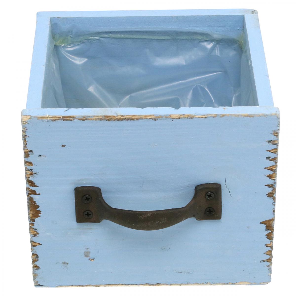 Termék neve: Növénydoboz fafiók világoskék kopott 12,5×12,5×10 cm