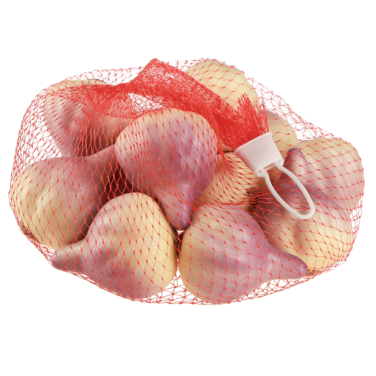 Tegye szebbé lakóterét vagy következő rendezvényét dekoratív zöldségeinkkel. A finom sárga és az elegáns lila kombinációja minden helyiségnek modern és friss hatást kölcsönöz. A 12 élethű mesterséges fokhagymahagyma stílusos piros hálóban van bemutatva, fehér, újrafelhasználható zárással. Mindegyik darab praktikus, körülbelül 4,5 cm átmérőjű, ezért ideális dekorációs elrendezésekhez.