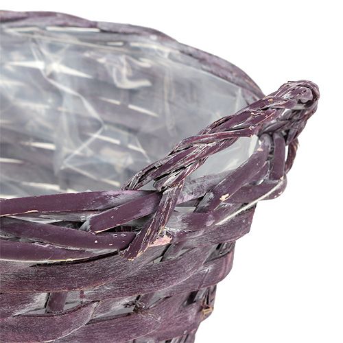 Ezzel a sötétlila színű kerek növénykosárral gyönyörűen bemutathatsz egy kis virágos növényt! A finom fűzfaágakból szőtt kosár két praktikus fogantyúval rendelkezik a tetején, belül pedig robusztus műanyag fóliával bélelt, mely szélén zsinórral van megkötve. Így egy kis virágfölddel, friss virágmaggal vagy gyógynövénymaggal nagyon egyedi virágdekorációt készíthetsz.Természetesen használhatunk friss virágokat és például árvácskát vagy ibolyát is. Ezután színes virágdugókat, díszszalagokat és díszköveket adhat hozzá, hogy ültetése valami egészen különleges legyen. A fonott kosár praktikus formájának és méretének köszönhetően tökéletesen illeszkedik nappali asztalra vagy ablakpárkányra és mivel extra fehérített a felülete, az egész kifejezetten rusztikus megjelenésű és vidéki stílussal is kombinálható!