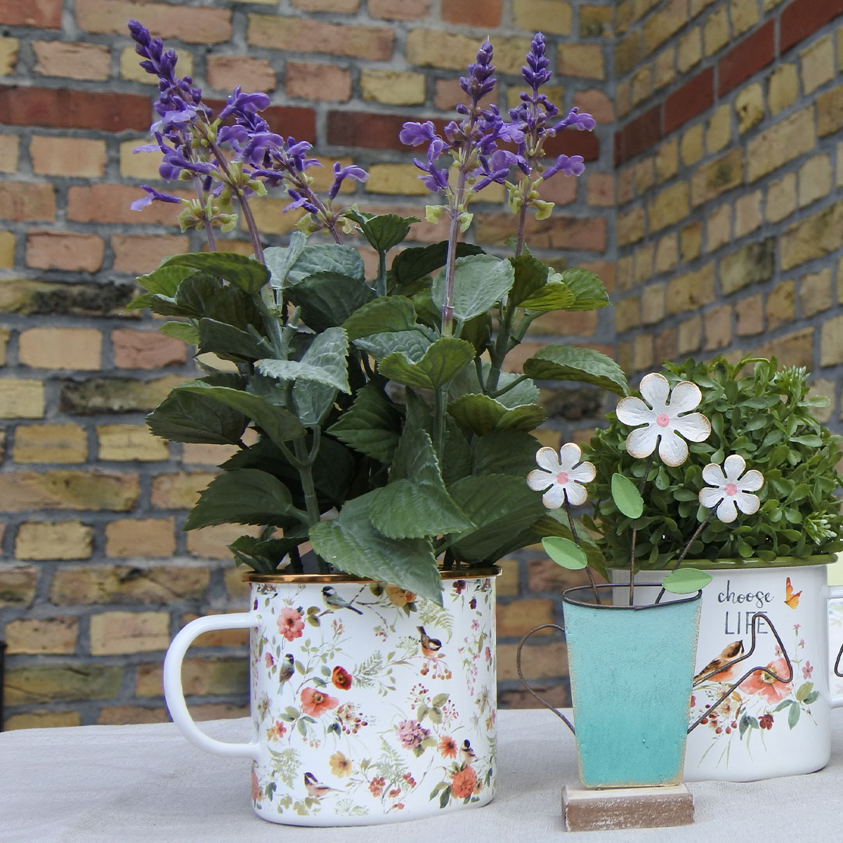Ez a virágmotívumokkal díszített ültetőgép vintage megjelenésével inspirál. Az ültetésre szánt zománcos bögrében a kedvenc növényei igazán jól jönnek.