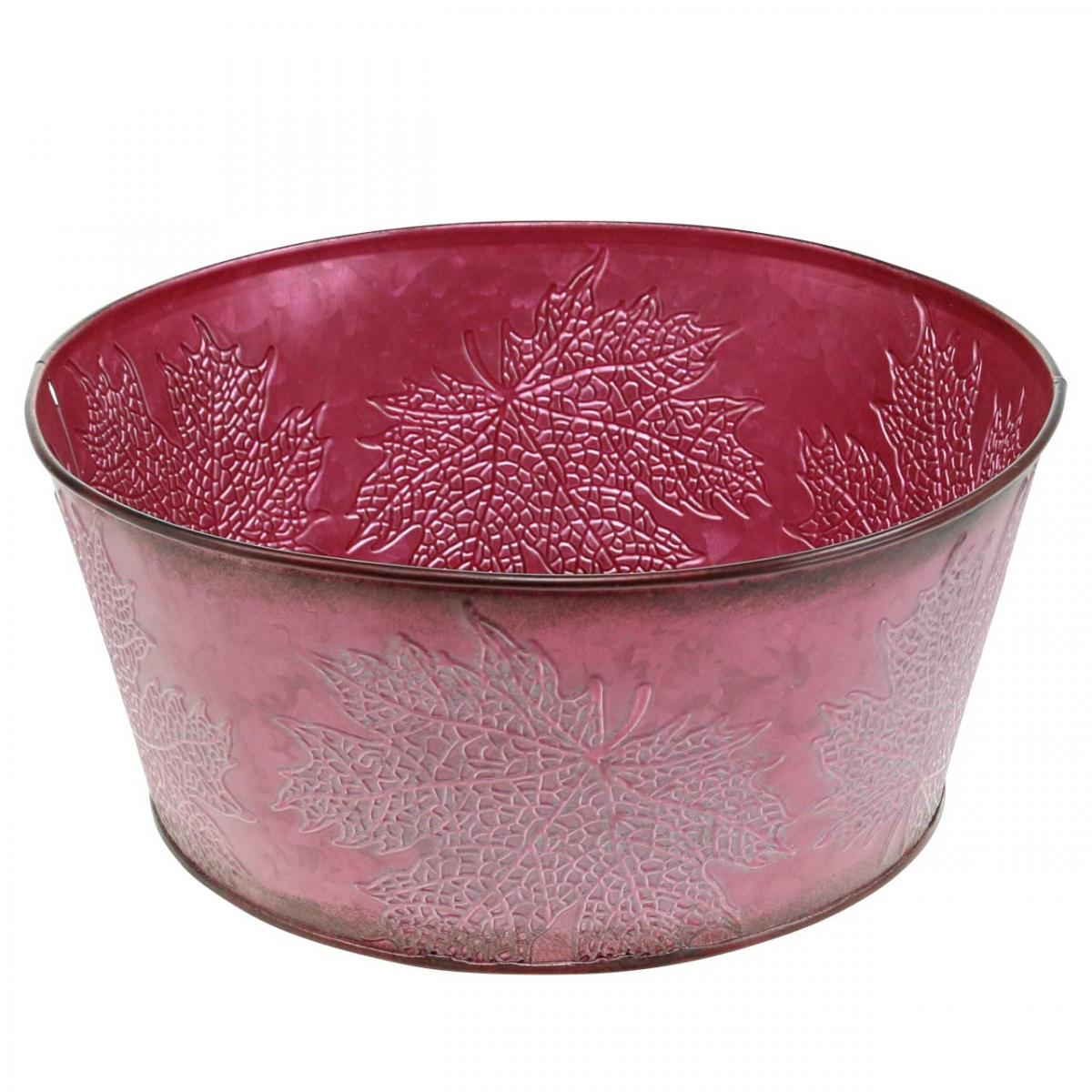 Termék neve: Növénytál őszre, fém tartály levéldíszítéssel, dekoratív cserepes borvörös Ø25cm H11cm