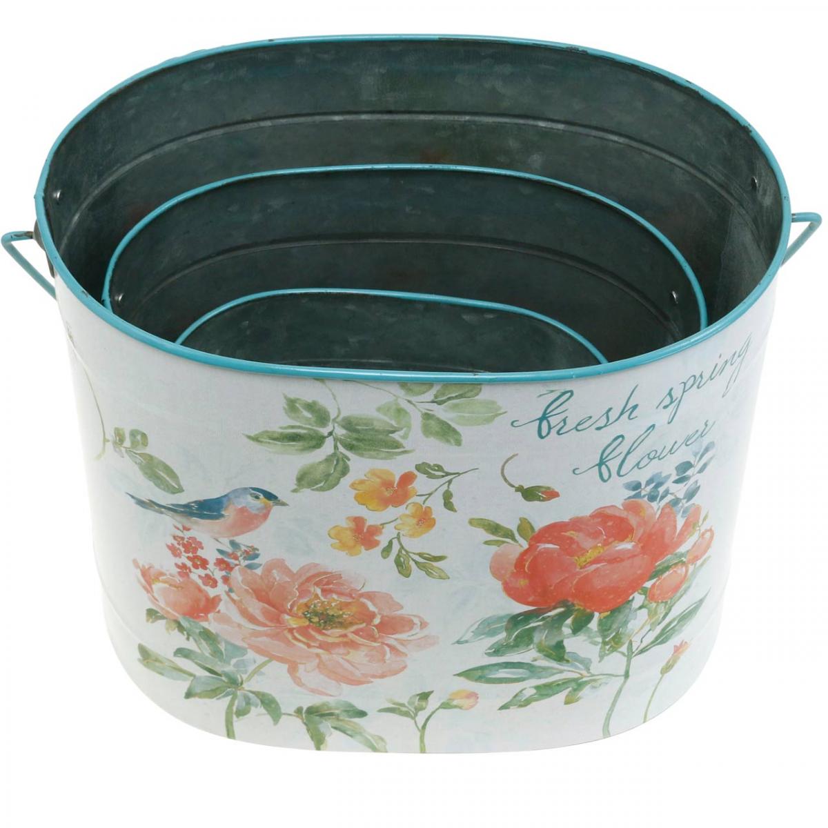 Növényvödör ovális vintage tavaszi dekoráció fém ültetőgép 26/22 / 17cm 3 db-os készlet