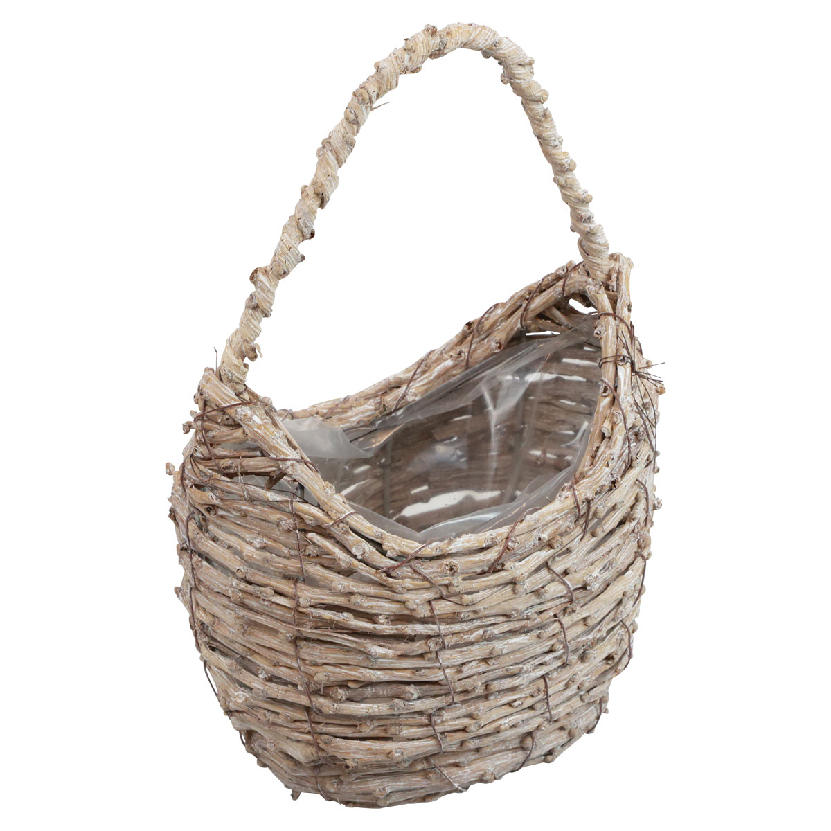 Ez a fogantyús kosár fehérre meszelt ágaival igazi fénypontot jelent mindenkinek, aki értékeli a természet szépségét!