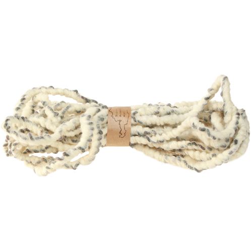 A gyapjúzsinór a minőségi és fenntartható termelés kiváló példája. A zsinór kéttónusú, a krémfehér gyapjút sötétszürke juta zsinórral kombinálja. Így tökéletes anyag mindenki számára, aki értékeli a természetességet és a minőséget. A feldolgozás a legnagyobb gondossággal történik.