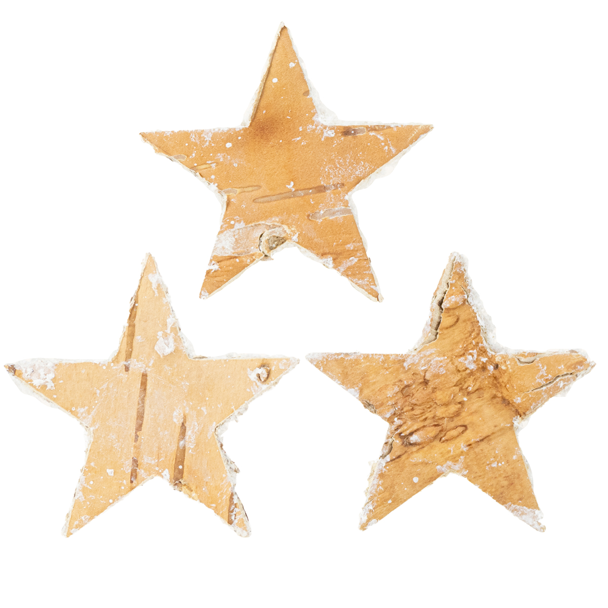 Nyírfa csillagok, hófödte, 4 cm, natúr, 60 darab