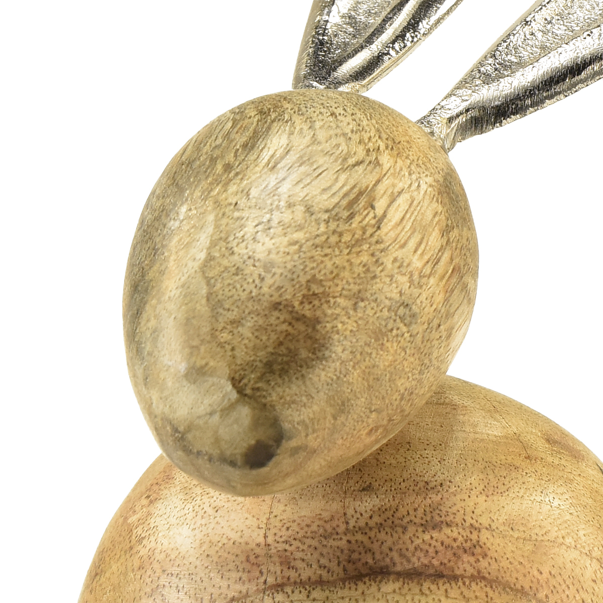 A fa nyuszit a húsvéti dekorációban is nagyon jól fogadják, sok természettel és tolldíszítéssel. A szemet természetesen a fülek vonzzák, amelyek a fából készült nyuszit fa és fém dekorációvá varázsolják. A fülek szintén ezüst színűek, ezért érdekesen fognak kinézni a sok természetes díszítéssel ellátott húsvéti kosárban.