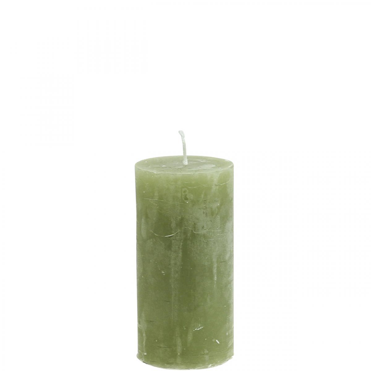 Termék neve: Olajzöld oszlopgyertyák 50×100 mm, 4 db-os szett, dekoratív, egyszínű