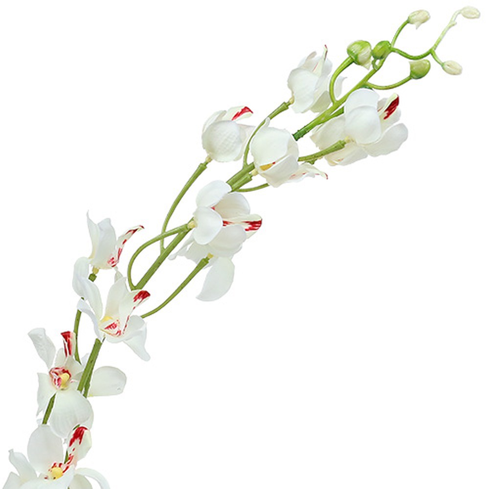 A fehér színben készült mesterséges Mokara orchideát 3 darabból álló kötegként szállítjuk, és körülbelül 92 centiméter hosszú. A virág átmérője körülbelül 6 centiméter.