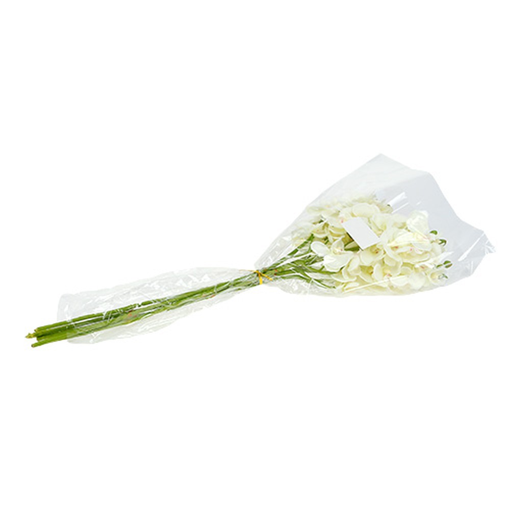 A krémfehér orchideák virágai valósághű textúrájú anyagból készültek, és erős műanyagból készült kis bimbókkal és zöld szárral vannak felszerelve. Összesen 6 db-os kötegben szállítjuk. Az orchideák mindegyike körülbelül 57 centiméter hosszú, és több virágos ága van.