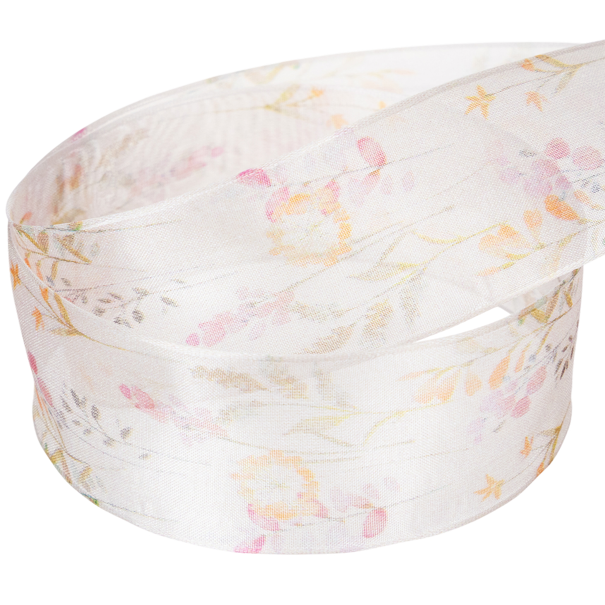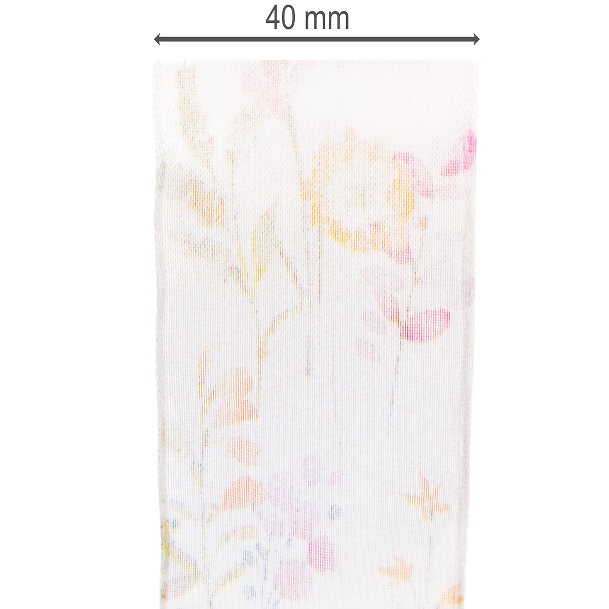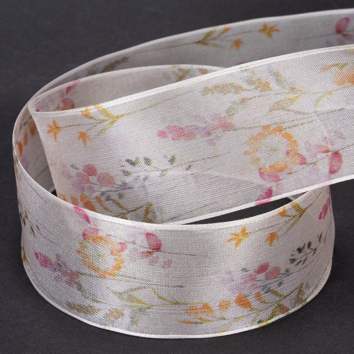 Termék neve: Organza szalag, sifon szalag, virágmintás, narancssárga/rózsaszín, 40 mm, 15 m