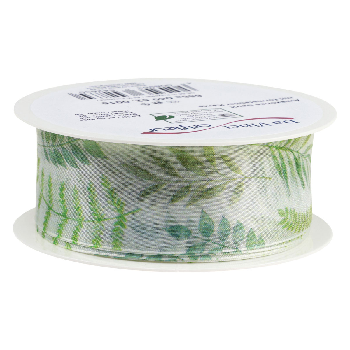 Termék neve: Organza szalag sifon szalag zöld levélindák 40mm 15m