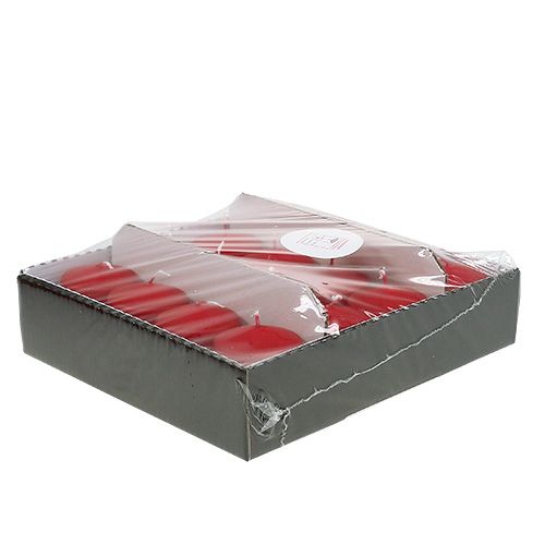 A közepes méretű, piros színű oszlopgyertyákat összesen 16 db-os készletben árusítjuk, és kartondobozban szállítjuk. Mindegyik gyertya körülbelül 100 milliméter magas és körülbelül 60 milliméter átmérőjű.