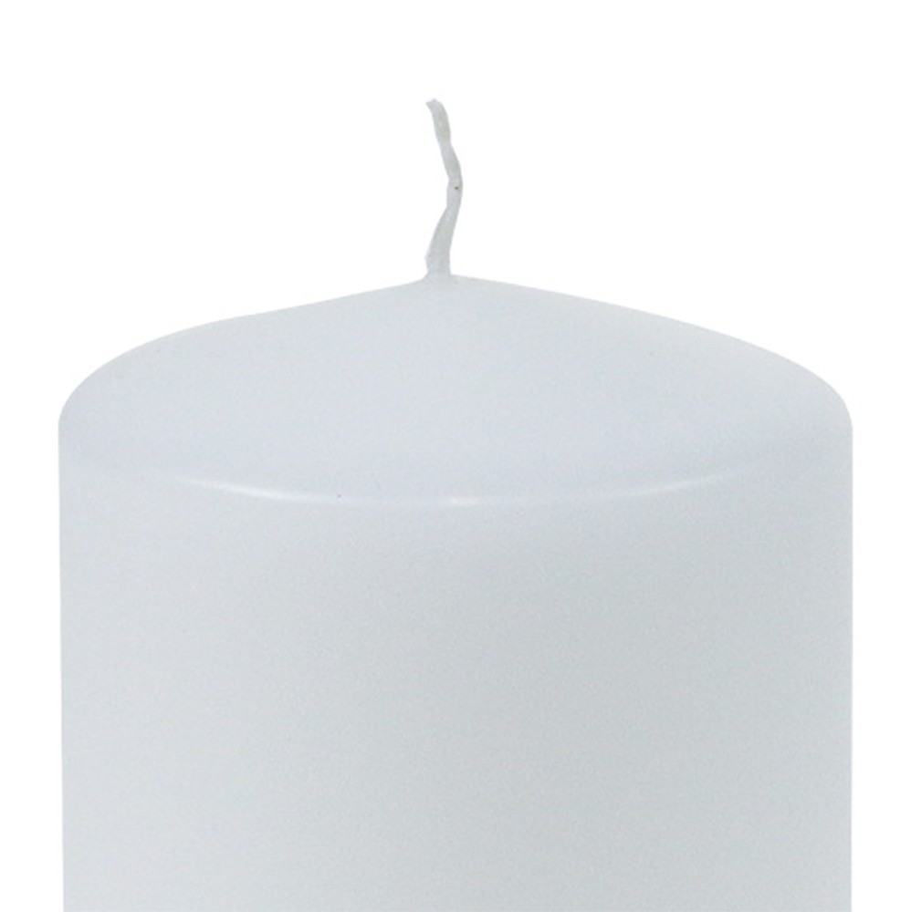 A fehér oszlopos gyertyát 6 db-os készletben kínáljuk, körülbelül 150 mm magas és 80 mm széles. A padlón található speciális biztonsági fólia megakadályozza az ellenőrizetlen égést.