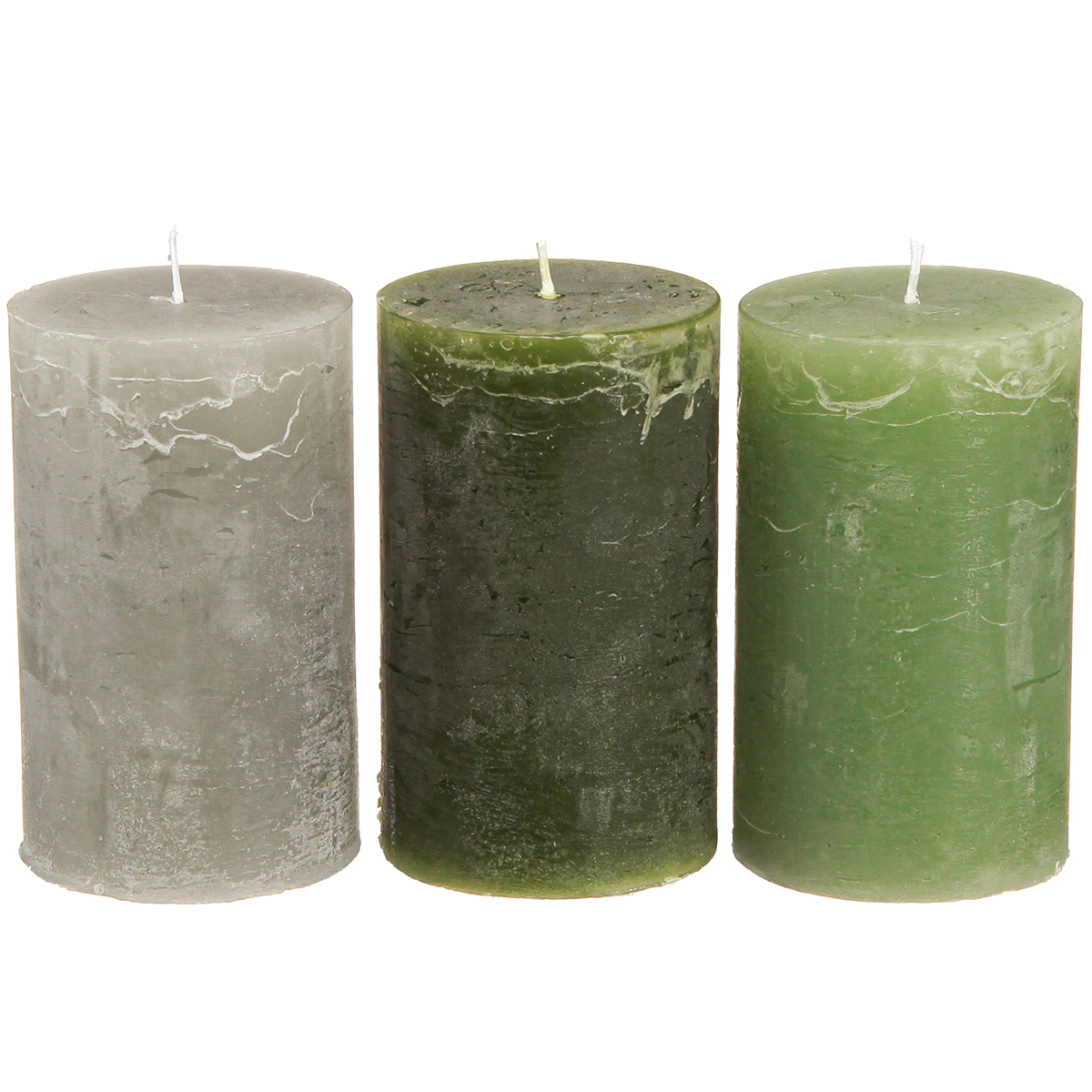 Oszlopos gyertyák 3 színben zöld különböző méretekben 12 db