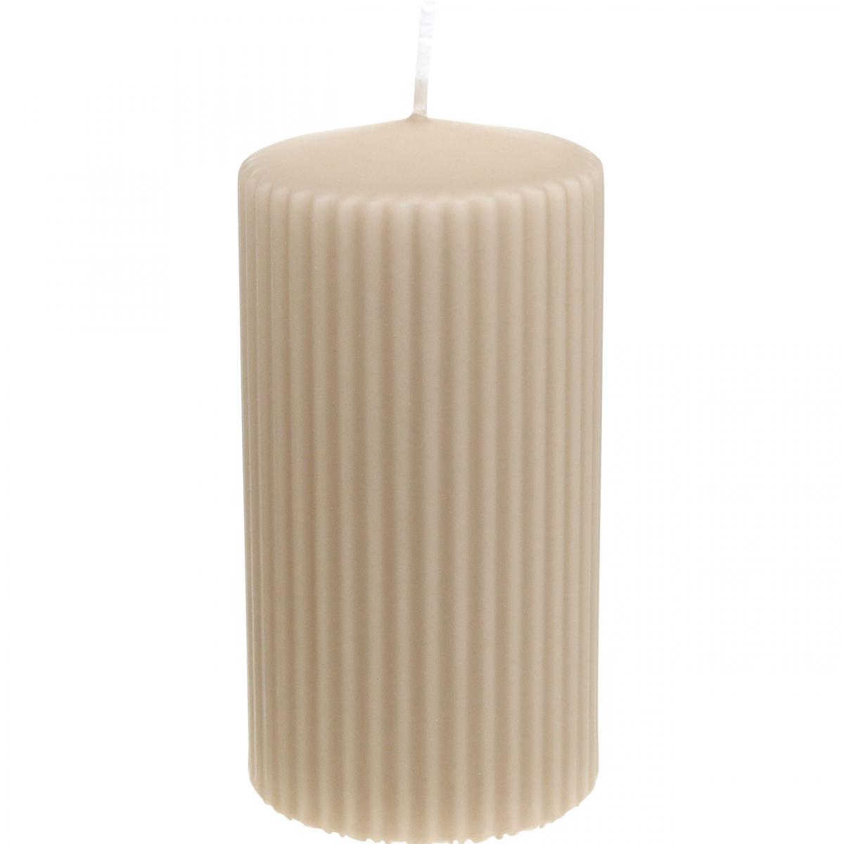 Oszlopos gyertyák bézs barázdált gyertya 70/130mm 4 db