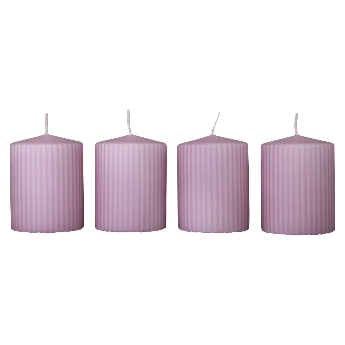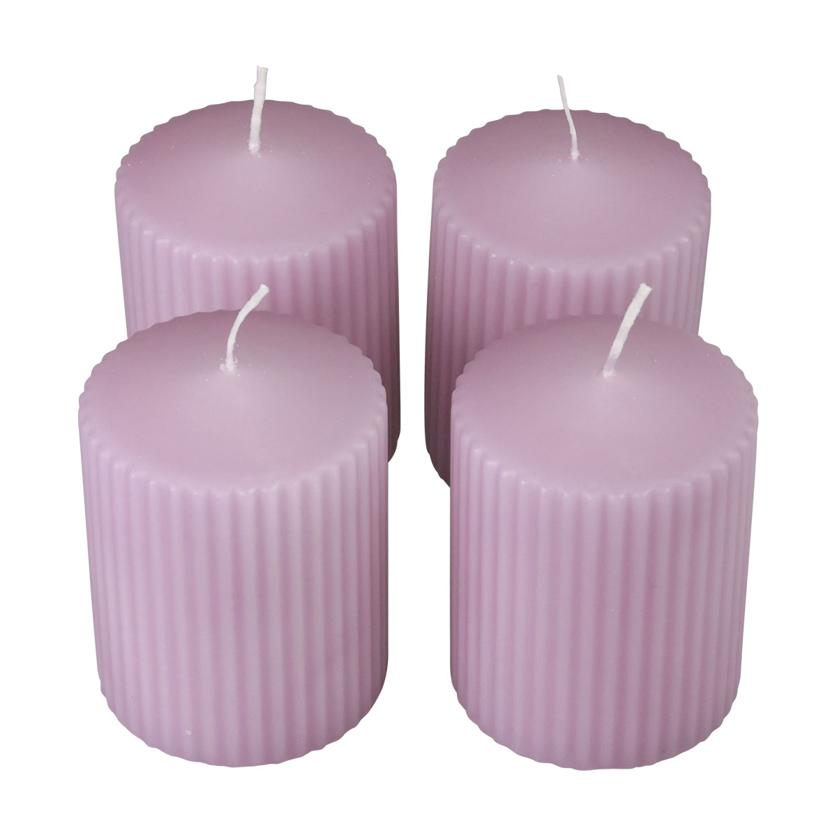 Termék neve: Oszlopos gyertyák lila barázdált gyertyák dekoráció 70/90mm 4 db