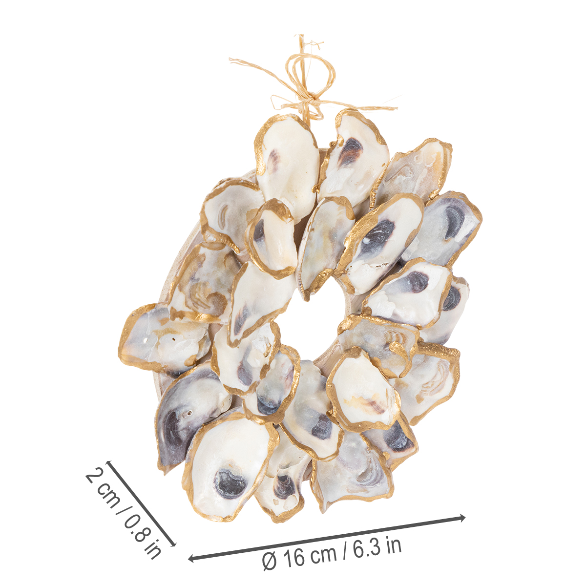 Termék neve: Osztrigakoszorú kagylódekoráció, tengerészeti lakberendezési kiegészítő, természetes fali dekoráció, 12 cm