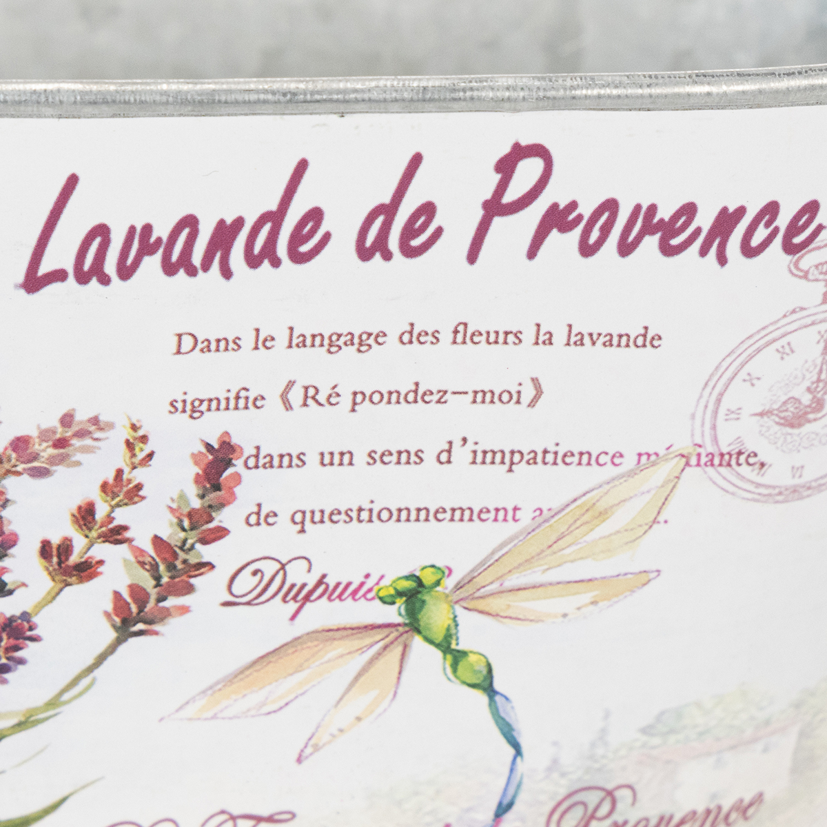 Fedezze fel ezt az ovális virágtálat fogantyúkkal és finom levendula- és szitakötőmintával, amely nyugalmat és nyugalmat hoz szobájába. A fémtál rusztikus és nosztalgikus megjelenésű egyszerre.